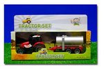 Er zijn vier verschillende sets van tractor met aanhanger verkrijgbaar. Leuk bij deze set is een set van 4 koeien met de schaal 1:50, deze koeien passen in de veeaanhanger.